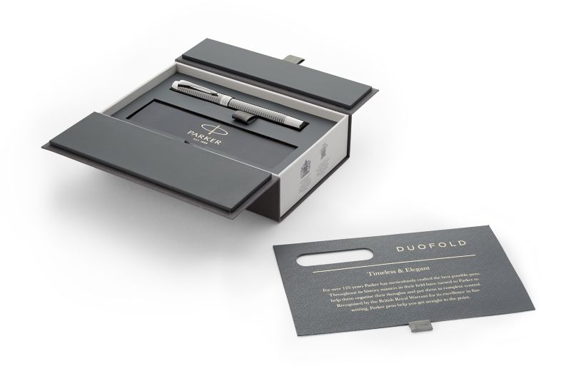 Ручка роллер Parker Duofold Prestige Ruthenium Chiselled CT от официального дилера Parker в Бийске. Вы можете дополнительно заказать гравировку, которая подчеркнет Вашу оригинальность и придаст памятность статусному подарку. Все ручки Паркер поставляются в фирменном футляре.